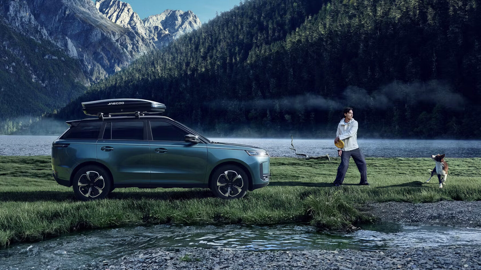 Дизайн автомобиля следует за «старшими братьями» J7 и J8: лаконичные прямые линии, крупная решетка радиатора, выраженный внедорожный характер. Широкие колесные арки, диагональные выштамповки на бортах, массивная оптика — все это формирует узнаваемую внешность, в которой нет перегруженности деталями.